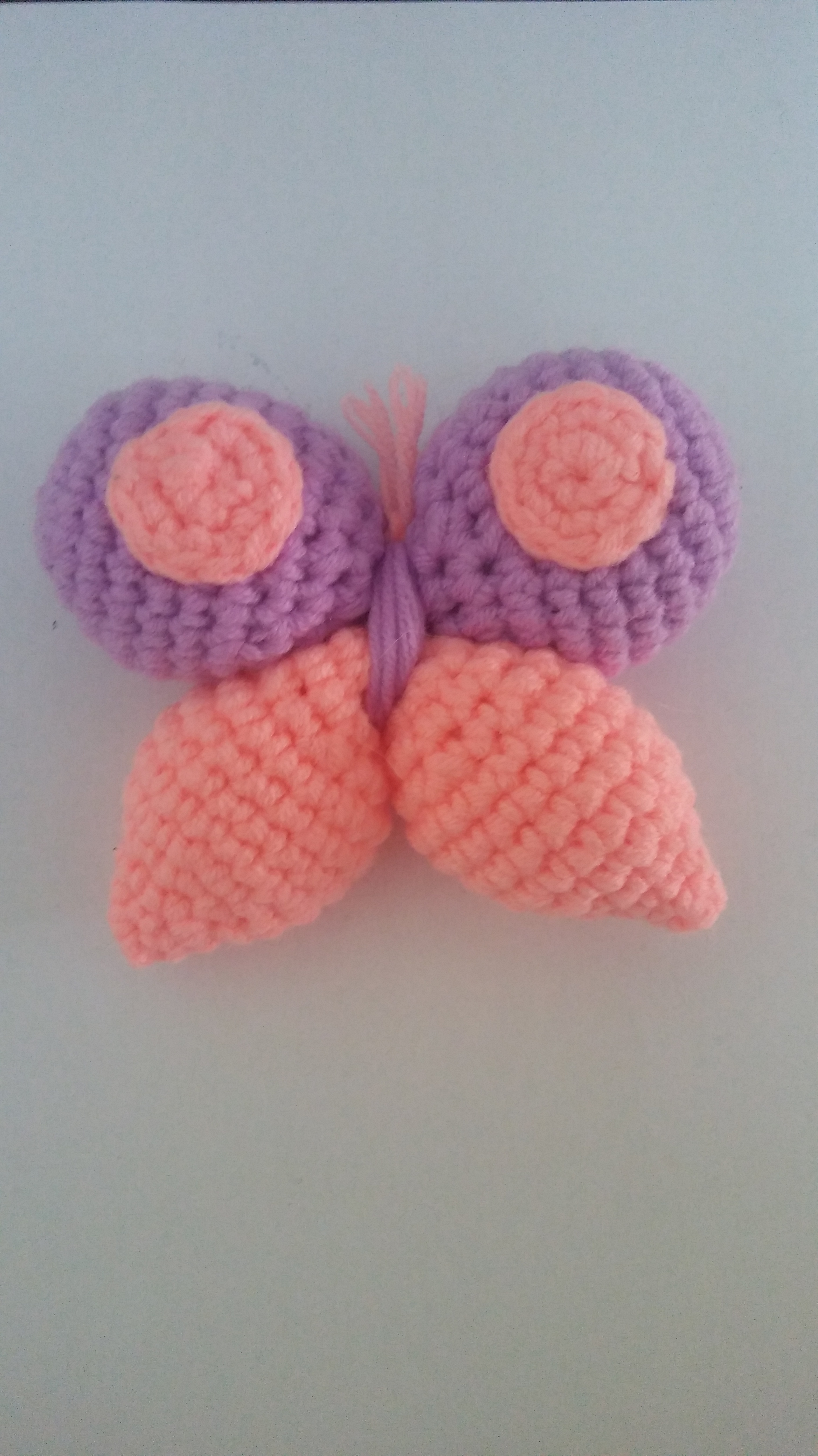 פרפר סגול ורוד, סרוג מחוטי כותנה במילוי רך, מכיל צפצפה.